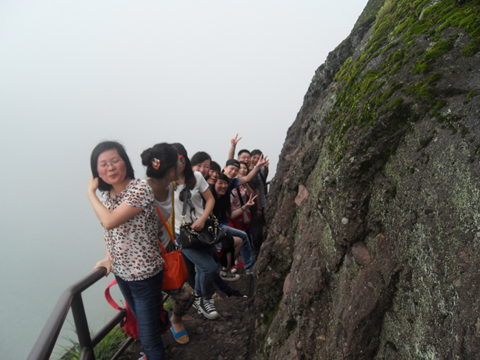 孔子云:智者樂(lè)水,仁者樂(lè)山。5月9日,鼎天裝飾員工們結(jié)隊(duì)跟團(tuán),共赴江郎山! 我們沿著彎曲、陡峭的山路,直接朝著山頂攀登,山頭的薄霧還未消散,這是昨夜被雨水洗禮過(guò)的緣故。放眼望去,巍峨矗立的江郎山在即將散去的薄霧里若隱若現(xiàn),蔚為壯觀(guān),一路上我們盡情的吮吸著雨水所帶給我們的好空氣。 江郎山聚巖洞、云、瀑于一山,集奇、險(xiǎn)、陡、峻于三石。停下腳步,抬頭仰望,高高的石墻,長(zhǎng)長(zhǎng)的石階,穿行其間,寒氣逼人,直透脊梁。雖然如此驚險(xiǎn)、艱難,但在我們團(tuán)隊(duì)相互的鼓勵(lì)下,我們終于爬到了山頂,看著四周的美景,感覺(jué)到了“會(huì)當(dāng)臨絕頂,一覽眾山小”的神氣場(chǎng)面! 爬山,不是純粹地停留在對(duì)身體的鍛煉了,而是對(duì)意志力的一種艱苦的磨煉。爬山,不是一種炫耀的資本和無(wú)聊的攀比,而是對(duì)自我身心的一種超越。過(guò)這樣頗具意義的集體活動(dòng),在工作上我們也要這樣,團(tuán)結(jié)一致,征服腳下的困難,這樣我們才能成為生活上的王者,才能體會(huì)到一覽眾山小的真正含義。