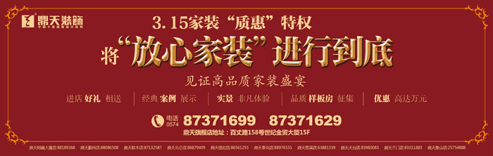 3.15即將到來(lái),“新消法、新權(quán)益、新責(zé)任”是今年315活動(dòng)主題,也是每個(gè)企業(yè)應(yīng)有的基本責(zé)任,保證產(chǎn)品的安全,保護(hù)消費(fèi)者的權(quán)益是每個(gè)企業(yè)應(yīng)有的態(tài)度。作為蟬聯(lián)十余載“消費(fèi)者信得過(guò)單位”、“家裝無(wú)憂標(biāo)桿企業(yè)”以及“寧波十大家裝品牌企業(yè)”等榮譽(yù)的鼎天裝飾直面“ 詳情咨詢:87371629 87371699 鼎天新浪微博:@鼎天裝飾