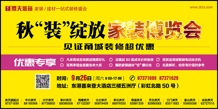 中秋放假僅兩天,出去玩不劃算,但看裝修就特劃算。9月26日(周六),鼎天裝飾秋“裝”博覽會盛大綻放,豪禮來襲,定就送高端智能電動晾衣機(jī),更有贏萬元整套櫥柜及各種免單大獎,整體裝修優(yōu)惠高達(dá)數(shù)萬元。地點:東港喜來登大酒店(彩虹北路50號)三樓五洲廳。中秋看裝修,為愛筑家! 聊:至尊工作室設(shè)計團(tuán)隊一對一服務(wù) 與設(shè)計師聊什么?一張平面戶型圖,如何聊出立體感?鼎天裝飾的做法是為業(yè)主提供千余套經(jīng)典裝修案例,全部是由鼎天裝飾設(shè)計師、施工團(tuán)隊完成的優(yōu)秀作品,涉及千余種戶型和各種設(shè)計風(fēng)格。憑借雄厚的實力,鼎天的設(shè)計師可以實現(xiàn)與業(yè)主的充分溝通。針對高端別墅裝修的業(yè)主,本次秋“裝”盛會,鼎天裝飾通過自身強(qiáng)大的資源整合能力,以及領(lǐng)攜至尊工作室設(shè)計團(tuán)隊推行別墅裝飾的整體規(guī)劃設(shè)計與施工、別墅設(shè)備、主材、家具、配飾的私屬定制一站式服務(wù),在細(xì)節(jié)上做到極致,滿足高端消費者在居家裝修上的各種需求。 看:百余套在建工地,看品質(zhì)裝修 如果聊設(shè)計,還不能讓您盡興,那么鼎天還安排了“在裝工地體驗行”。實地踏訪百余套在建工地,設(shè)計師、項目經(jīng)理在施工現(xiàn)場為您一一介紹施工工地的裝修細(xì)節(jié),有問必答。此次活動,鼎天安排的在裝工地,包括青林灣、鉑翠灣、東方一品、東海府、天境花園、海外灘、新外灘一號、中海國際社區(qū)、銘豪觀樾、維科上院、鈺鼎園、蘇園、印象外灘、星河國際、舒沁苑、君和院、銀億東岸、風(fēng)格尚品、盛世華府、金億文園、悅瀾灣、景瑞望府、君瀾上府、榮安心居、藏瓏、締壹城、君園和莊、山清軒、銀億上郡、文瀾水岸、左岸尚苑、金色江山、水榭花都、紫玉花園、麗江苑、君雅苑、金色瓏庭、東都華庭、宜家花園、晴園、麗景英郡、保利城、芳辰麗陽、英倫水岸、東湖觀邸、盛世天城、江南一品、雍城世家、上上城等甬城名小區(qū),極具參觀價值。信仰品質(zhì),打造您的專屬生活。 拿:各種免單大獎等您拿,讓您裝修一省到底 中秋放假,裝修也為您放“價”。本次活動鼎天將在現(xiàn)場限量征集前80套“品質(zhì)”樣板房以成本價為其裝修,且還將對前80套樣板房下定客戶贈送高端智能電動晾衣機(jī)一臺。除此之外,活動當(dāng)天憑鼎天裝飾定單,還可參與砸金蛋贏免單大獎,將有機(jī)會贏取價值萬元的整套櫥柜免費帶回家,更有家裝建材、工程抵用款等各類免單大禮。每個金蛋都有禮,絕不讓您空砸。活動現(xiàn)場,還集結(jié)了眾多一線建材品牌,推出聯(lián)盟建材讓利大惠,讓您輕松選購遠(yuǎn)低于市場價的品牌建材。優(yōu)惠空前! 選:整體家居裝修方案任您選 鼎天裝飾打造整體家居解決方案,滿足大眾裝修省心、省力、省錢的“三省”裝修需求。其優(yōu)勢在于,方案借鑒了大量優(yōu)秀裝修案例,洞悉人們的日常生活,最大化確保居住的舒適性和功能使用的合理性,是大團(tuán)隊的整體智慧結(jié)晶。目前,鼎天裝飾成功推出的美艷1號、美艷5號、美艷8號及美艷999等精裝套餐,已在市場上取得了巨大成功,深受都市白領(lǐng)、經(jīng)典婚房及改善型裝修者的青睞。因為實行有效地資源整合,鼎天整體家居方案比常規(guī)裝修節(jié)省費用400-500元/平方米。秋“裝”啟幕,各種方案任您挑選。 特別預(yù)告: 9月26日(周六)9:00---17:00,鼎天裝飾在東港喜來登大酒店(彩虹北路50號)三樓五洲廳。舉辦“秋‘裝’綻放家裝博覽會”,現(xiàn)場限量征集前80套秋‘裝’綻放樣板房,成本價為您裝修,且由鼎天至尊工作室、金牌施工團(tuán)隊聯(lián)手打造完美樣板工程?,F(xiàn)場還尊享一站式家裝建材購齊服務(wù),高達(dá)萬元的種種福利,綻放中秋! 樣板房報名熱線:87371629 貴賓熱線:87371699 |