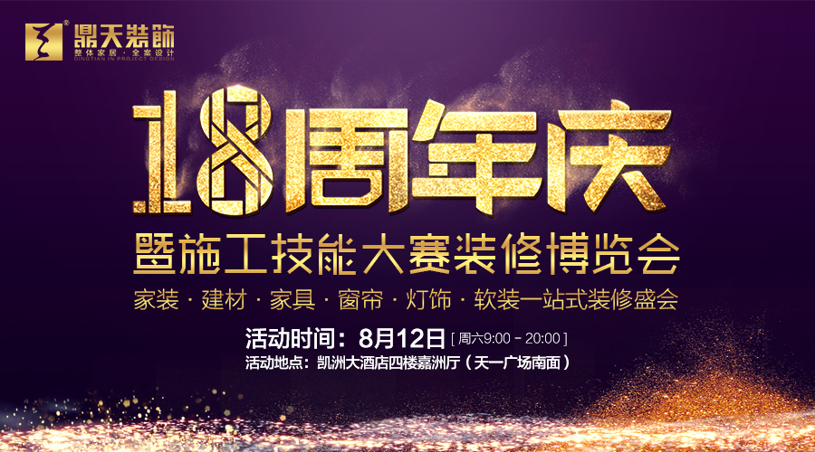 特別預(yù)告: 8月12日(周六)9:00-21:00,鼎天裝飾在凱洲大酒店四樓嘉洲廳(天一廣場南面)舉辦“施工技能大賽裝修博覽會暨18周年慶”活動,現(xiàn)場限量征集500套“18周年典藏”樣板房,悅享百萬裝修特惠,并由鼎天至尊工作室、金牌施工團(tuán)隊(duì)聯(lián)手打造完美家裝樣板工程。現(xiàn)場還尊享一站式家裝建材購齊服務(wù)。種種福利,燃爆行動!