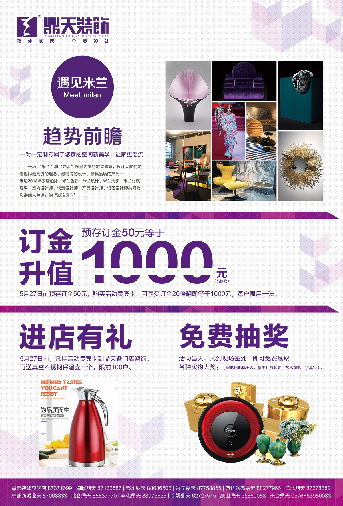 特別預(yù)告: 5月27日(周日)9:00---17:00,凱洲大酒店二樓聚龍軒,【鼎天裝飾美艷設(shè)計(jì)周】,現(xiàn)場(chǎng)限量征集前100套【美艷】樣板房,鼎天至尊工作室、金牌施工團(tuán)隊(duì)以成本價(jià),聯(lián)手打造完美家裝樣板工程。現(xiàn)場(chǎng)還尊享一站式家裝建材購(gòu)齊服務(wù),百萬元福利,感恩敬獻(xiàn)!