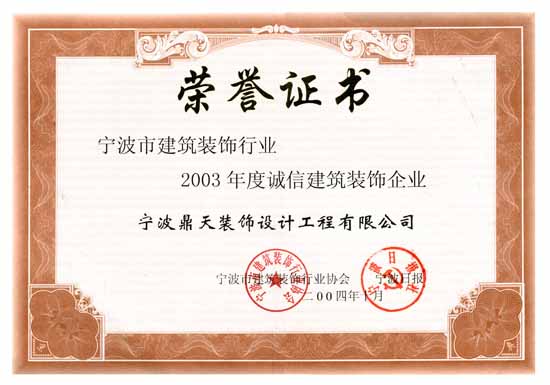 | 2004年10月 獲寧波市誠信建筑裝飾企業(yè) |
