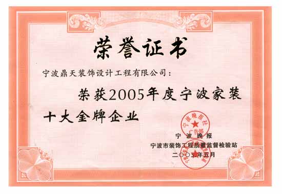 | 2005年05月 榮獲寧波家裝十大金牌企業(yè) |