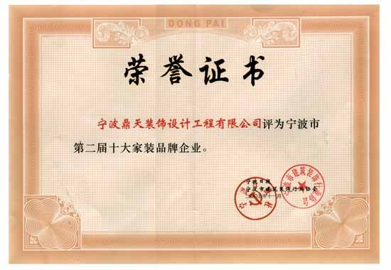 | 2005年11月 被評為寧波市第二屆十大家裝品牌企業(yè) |