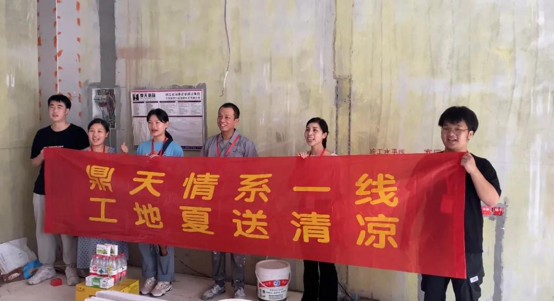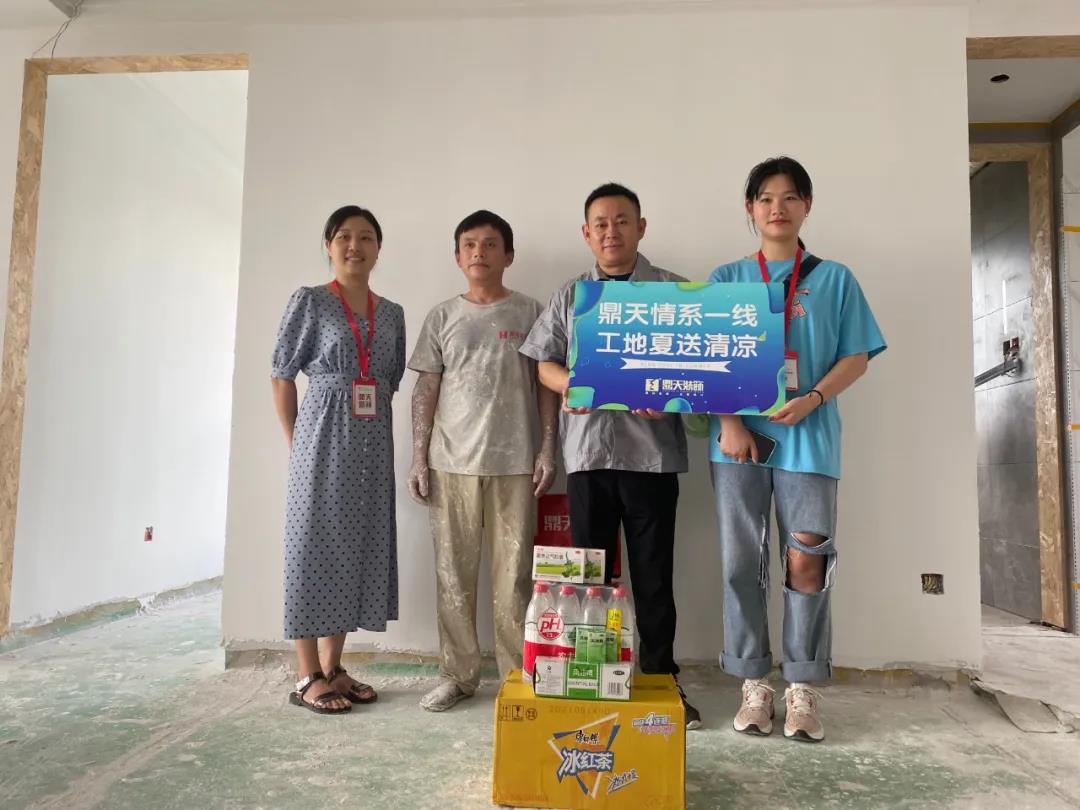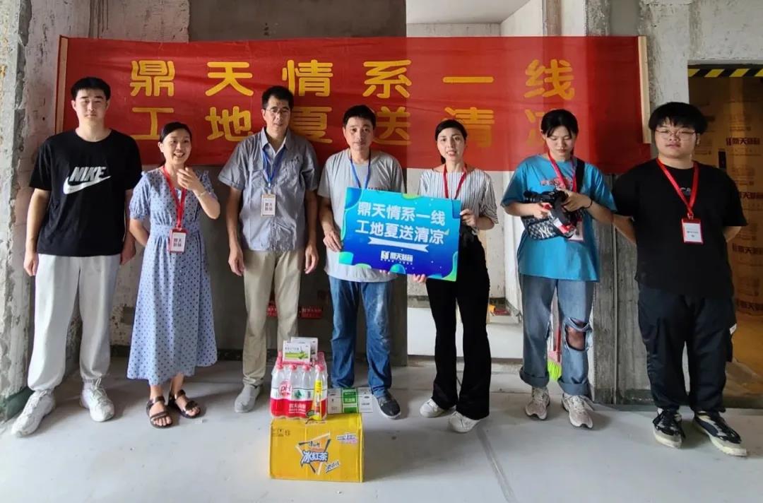 | 持續(xù)的高溫天氣時刻牽動著鼎天小伙伴的心。8月5日鼎天開展“夏送清涼”活動,為一線工人師傅送上飲料、礦泉水、清涼包等防暑降溫慰問品,為冒著高溫酷暑奮戰(zhàn)在工地一線的工人師傅們送去一份“清涼”的關(guān)懷。